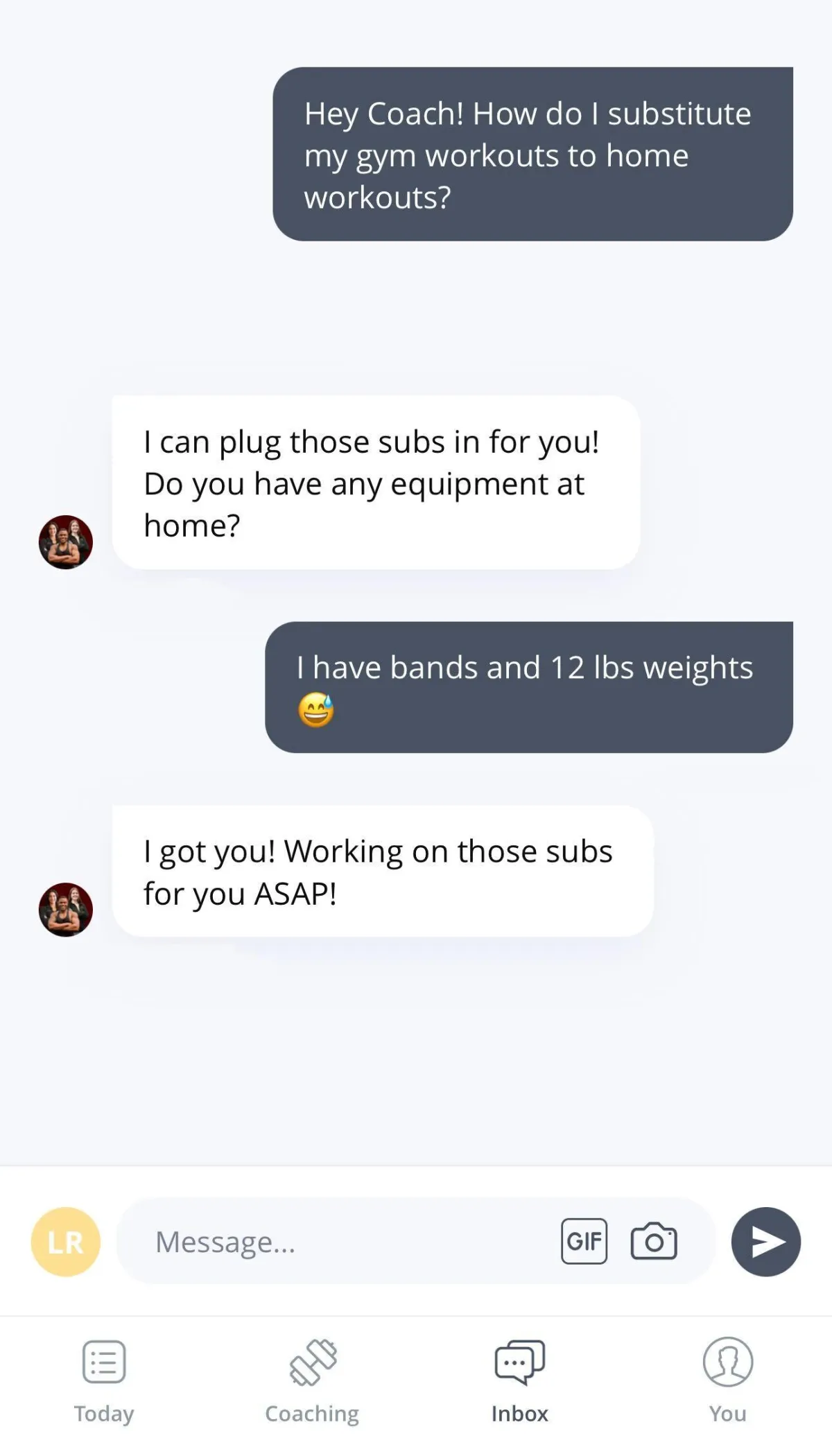 Get answers to all your questions directly from your coach with 1-on-1 messaging, available right in our coaching app!